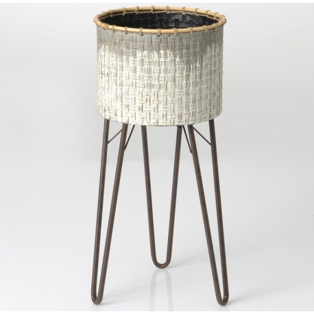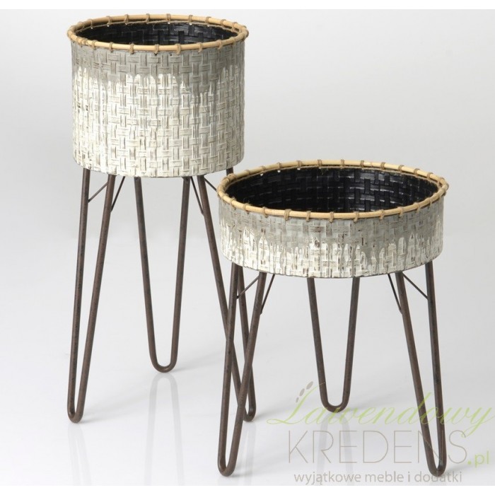 Metalowy kwietnik z plecioną osłonką, to jedna z tych dekoracji, które stylowo urządza przydomowy ogród lub taras.