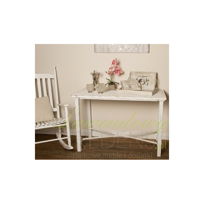 Biały stolik Shabby Chic to kwintesencja lekkości i delikatności. Prostokątny stół ma proste nogi z metalu i solidny blat z drewna jodłowego. Cały pokryty celowymi postarzeniami będzie odpowiedni dla kuchni w stylu prowansalskim, retro oraz industrialnym. Meble Shabby Chic od niemieckiego producenta powstały z miłości do naturalności i zamiłowania do antyków.