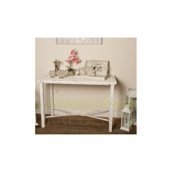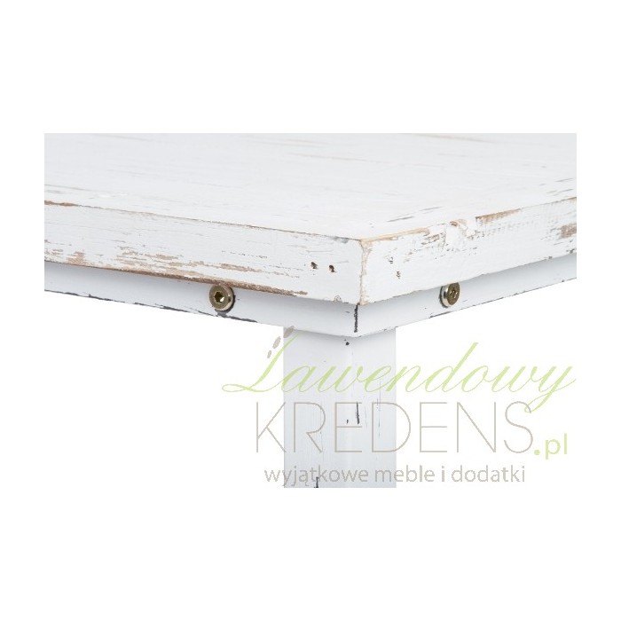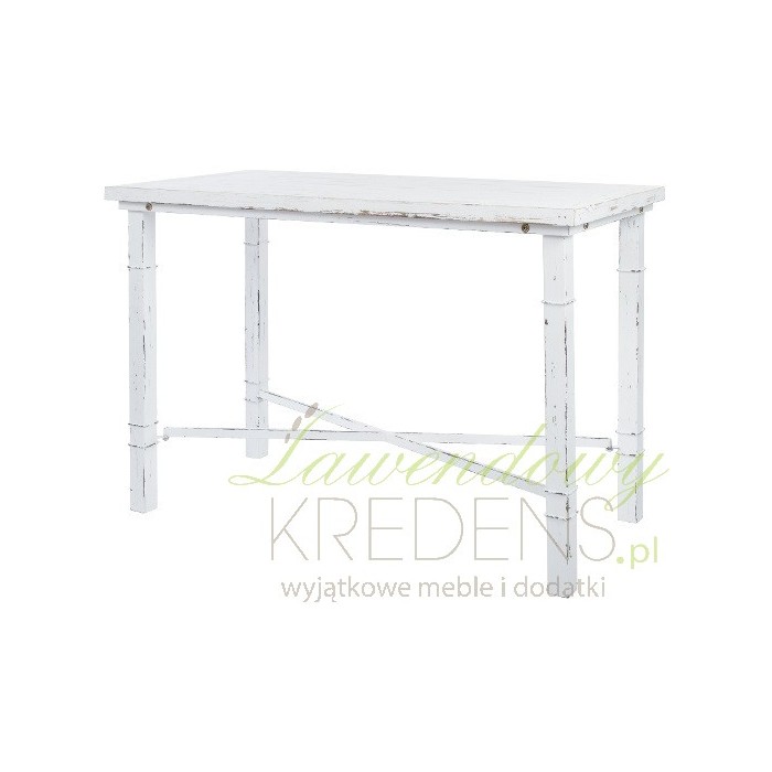 Prostokątny biały stolik Shabby Chic o postarzanej powierzchni i świetnym łączeniu nóg!
