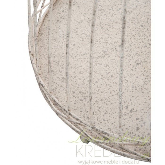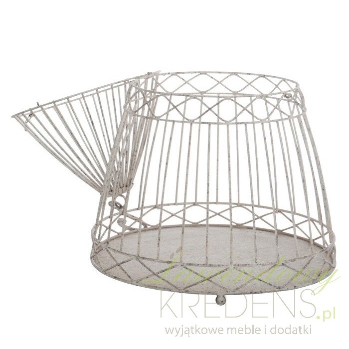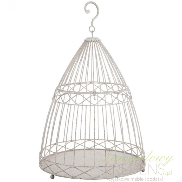 Ozdobna klatka na ptaki została w całości wykonana z metalu. Okrągła podstawa okryta jest metalową klatką z zdobniczymi przetarciami. Klatka otwiera się poprzez uniesienie górnej kopuły. Prowansalskie dekoracje takie jak klatki prowansalskie możesz z powodzeniem zawiesić również pod zadaszeniem.