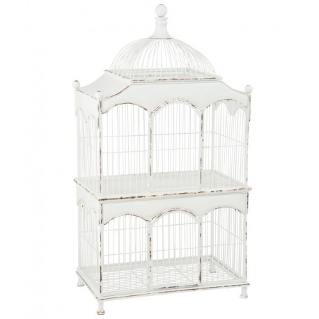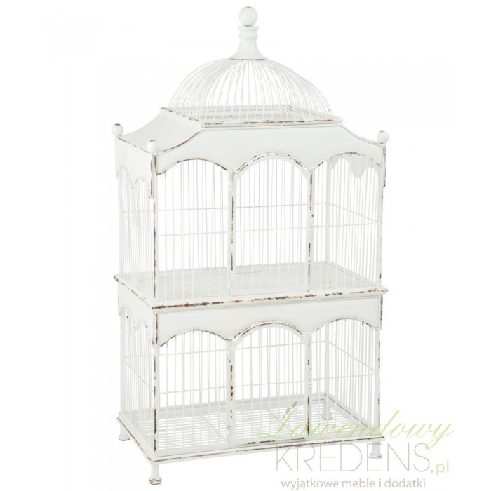 Klatka na ptaki została w całości wykonana z metalu i pomalowana na kolor jasnego kremu. Ozdobna klatka ma dwa piętra z otwieranymi drzwiami na górze oraz na dole. To co wyróżnia klatki w stylu prowansalskim to postarzenia jakimi są ciemniejsze odpryski jasnej farby. Prowansalskie dekoracje takie jak ozdobną klatkę możesz także ciekawie zaaranżować we wnętrzu.