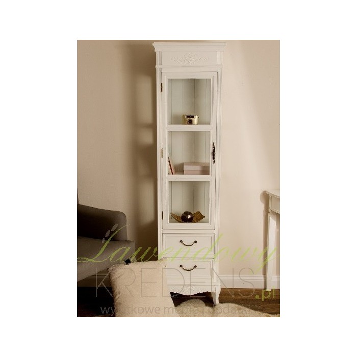Przeszklona, biała witryna prowansalska to mebel o szerokim zastosowaniu i najwyższej funkcjonalności. Pojemna witryna z szufladkami i półkami jest meblem coraz częściej uwzględnianym przy projektowaniu nowoczesnej kuchni w francuskim stylu. Witryna w stylu prowansalskim posiada aż dwie szufladki oraz dwie półki widoczne za szklanymi drzwiami. Meble w stylu prowansalskim mogą już niedługo zagościć także w twoich czterech ścianach!