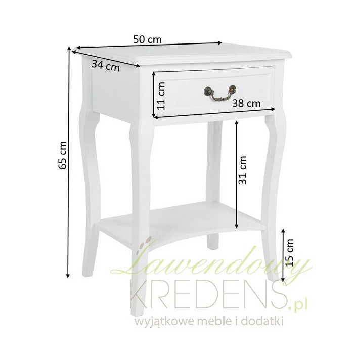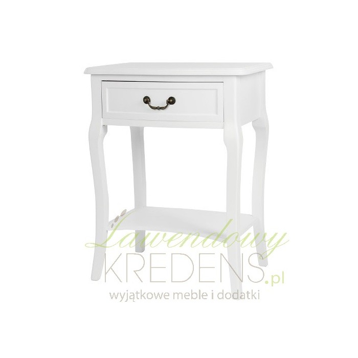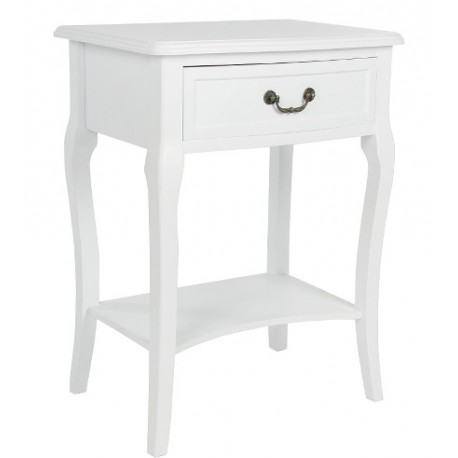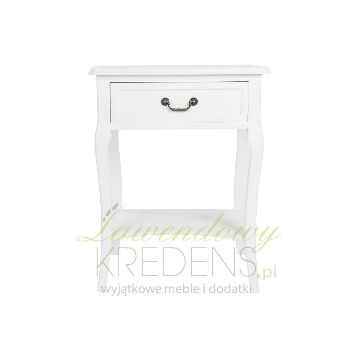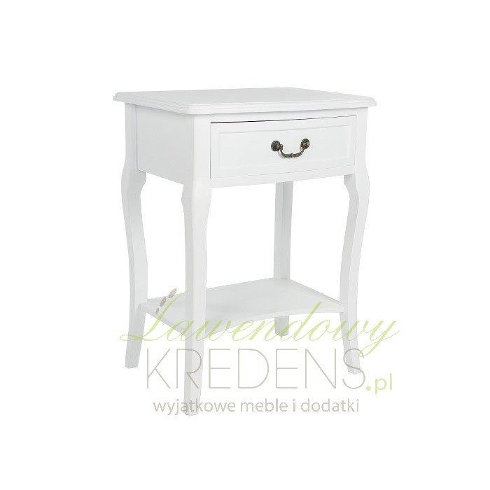 Śliczny i niezwykle, naturalnie prezentujący się stolik nocny to mebel z kolekcji Biała Riviera. Cechuje go subtelność oraz funkcjonalność, o której świadczy szufladka i półka. Wygięte nogi, lekkie wycięcie w półce i rzeźbiony uchwyt to symbole francuskiego designu. Nie zwlekaj i zamów meble prowansalskie już dziś, stoliki nocne to najlepszy wybór do sypialni!