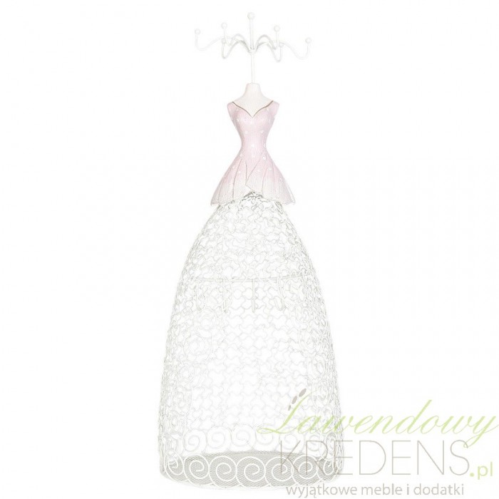 Stojak na biżuterię od Clayre&Eef na pierwszy rzut oka wygląda jak miniaturowy manekin ubrany w sukienkę księżniczki. Dół sukni wykonany z ażurowych wzorków tworzy jednocześnie podstawę dekoracji. Manekin na biżuterię z różowym gorsetem w groszki to świetny pomysł by obdarować kobietę bliską Twojemu sercu. Stojaki na biżuterię znajdziesz u nas w wielu ciekawych wzorach i różnych kolorach!