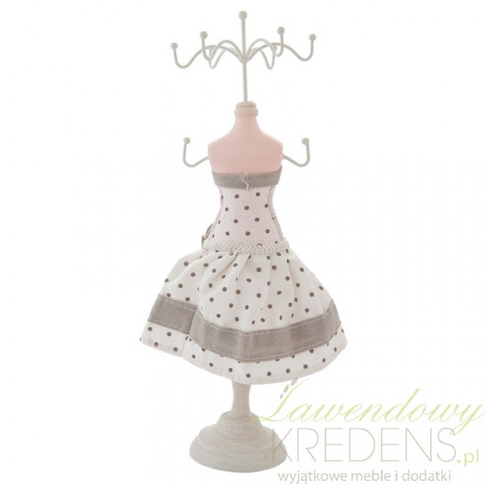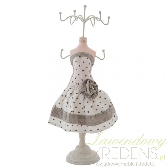 Śliczny stojak na biżuterię w sukience w kropki to pomysłowy dodatek do każdej kobiecej toaletki.