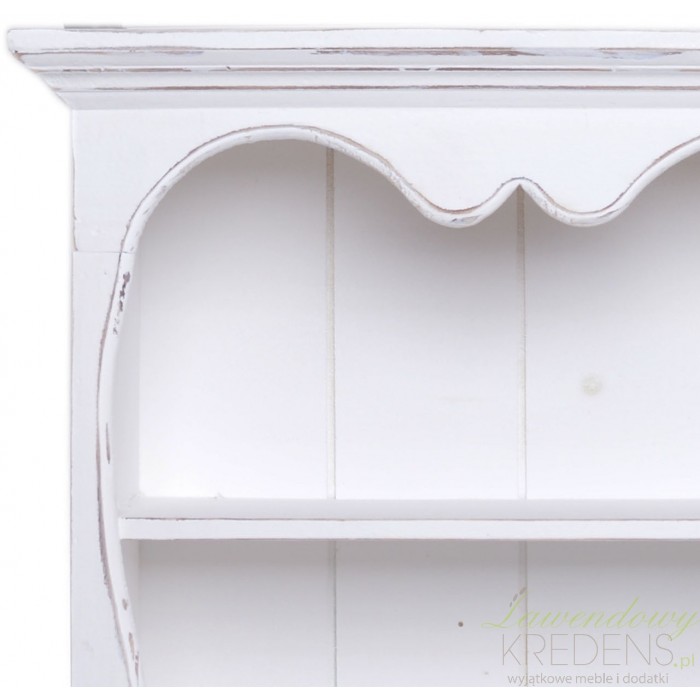 Oryginalna szafka prowansalska swój urok zawdzięcza formie wykonania, w której przeważają faliste kształty. Wewnątrz szafki znajdują się dwie półki, a na jej tylniej ścianie cztery panele wyglądające jak drewniane deski. Szafka ścienna z subtelnymi, acz wyraźnymi przetarciami zbuduje przyjazny klimat. Polecamy szafki ścienne prosto od holenderskiego producenta!
