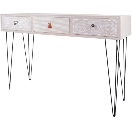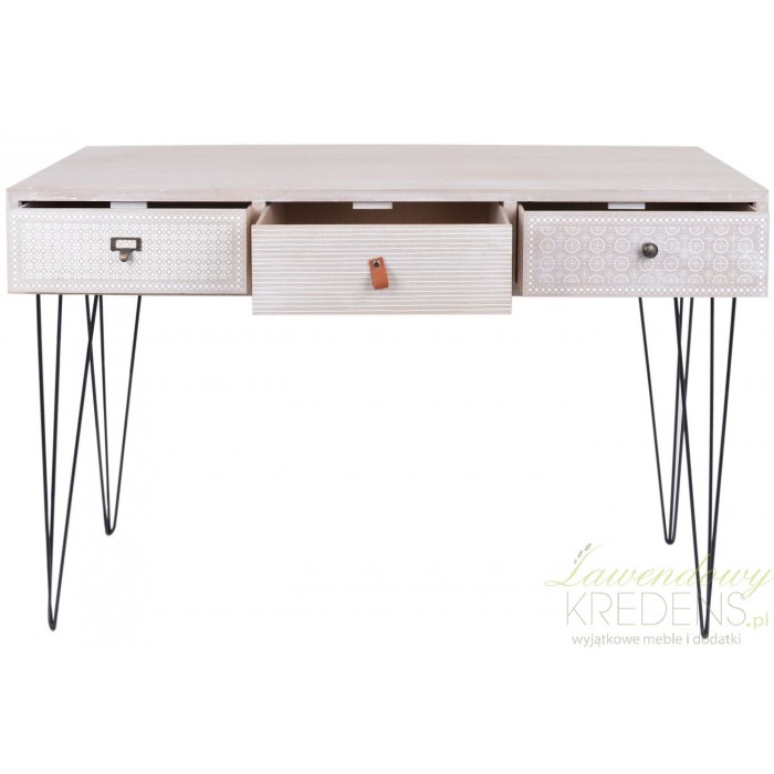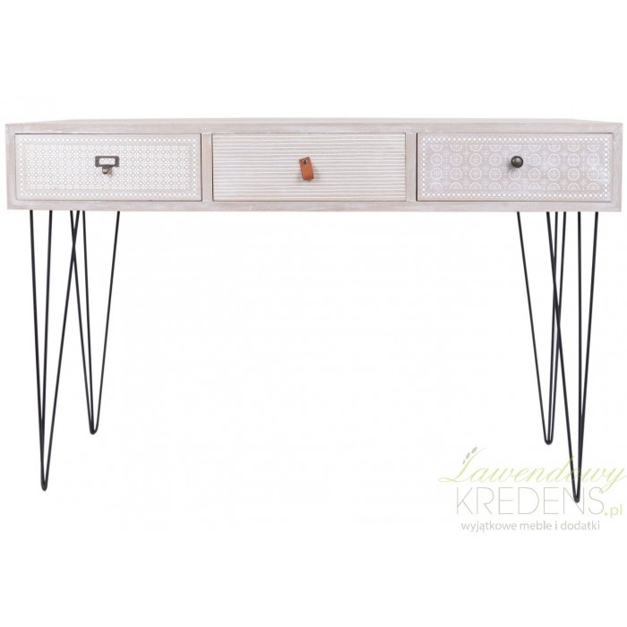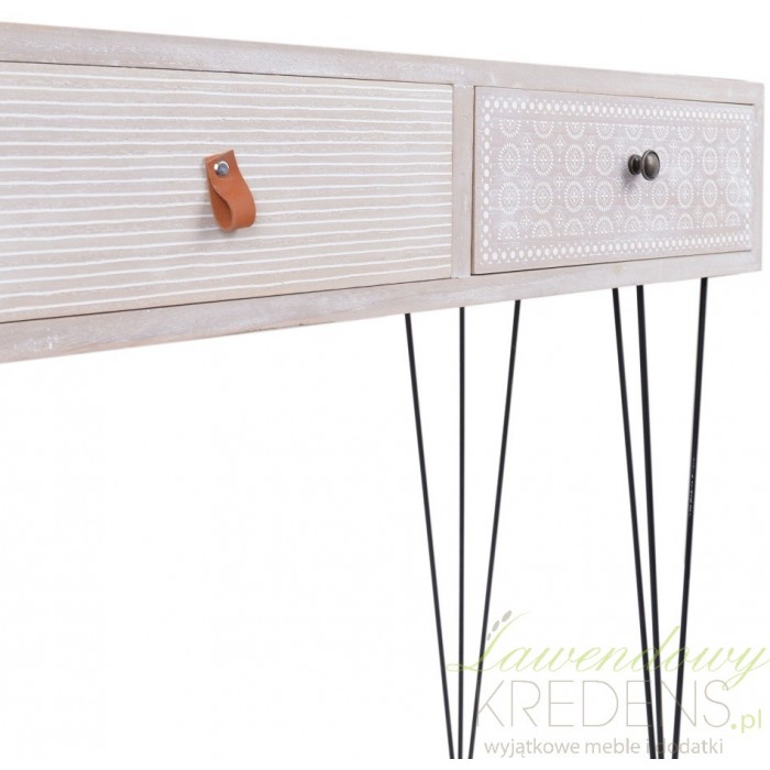 Jasna konsola retro to mebel, który wyróżniają spośród innych wzorzyste szflady z kolorowymi gałkami. Każda z szuflad jest oznaczona innym uchwytem, dzięki czemu szybko zapamiętasz co schowałeś w każdej z nich. Świetny mebel do nadania wnętrzu klimatu retro. Pasjonujące meble retro w naszej ofercie to sposób na wymarzone wnętrze skandynaskie lub shabby chic.
