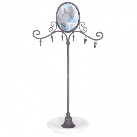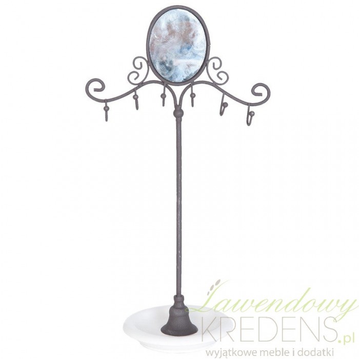 Metalowy stojak na biżuterię z owalnym lusterkiem to praktyczny pomocnik dla wszystkich Pań.