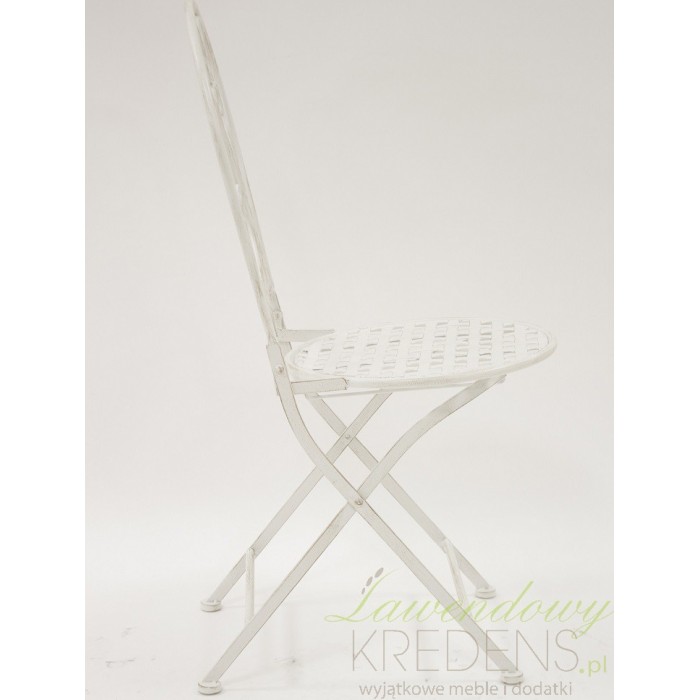 Prowansalskie krzesło ogrodowe to atrakcyjny punkt w aranżacji. Białe krzesło metalowe sprawia, że każde wnętrze i otoczenie domu nabiera subtelności i wygląda na bardziej harmonijne. Krzesło ma ażurowe siedzisko i oparcie z fantazyjną dekoracją. Podstawa krzesła to proste nogi krzyżujące się ze sobą. Ta finezyjna konstrukcja spowoduje, że Twoim gościom ciężko będzie się oderwać od stołu.