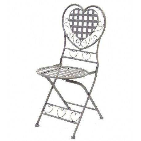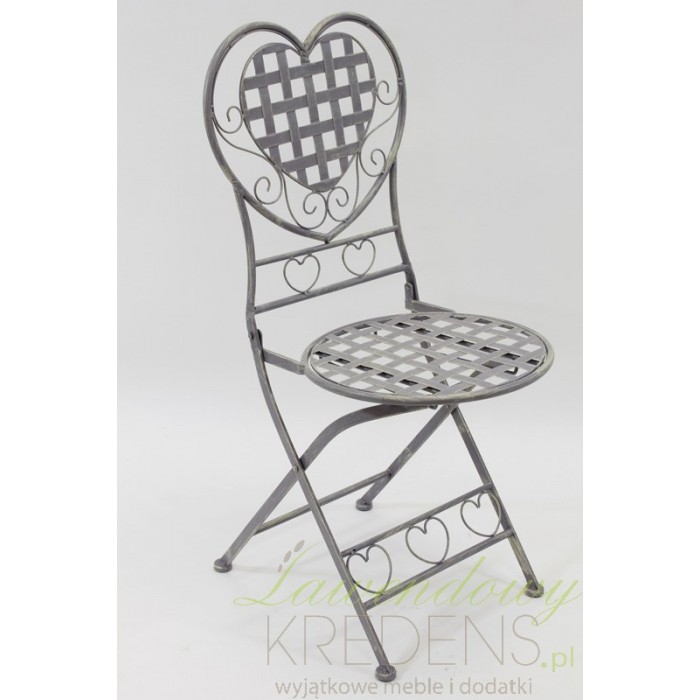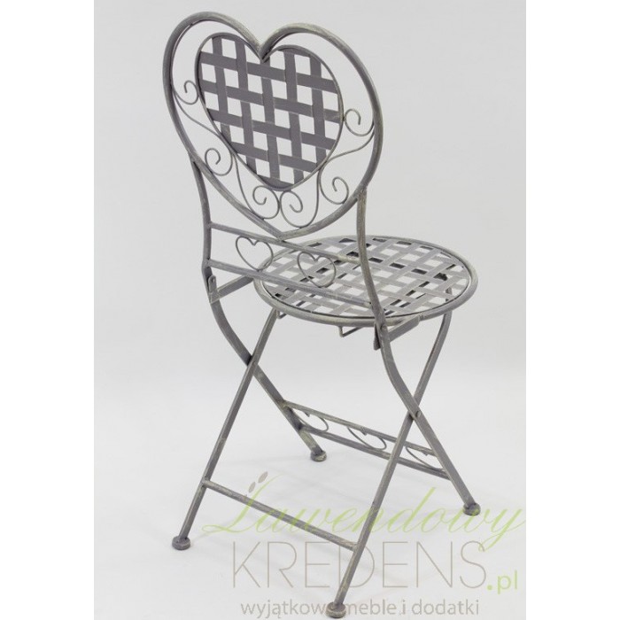 Krzesło ogrodowe z sercem na oparciu to świetny mebel prowansalski, który odmieni twój ogród i będzie go zdobił przez cieplejszą cześć roku.