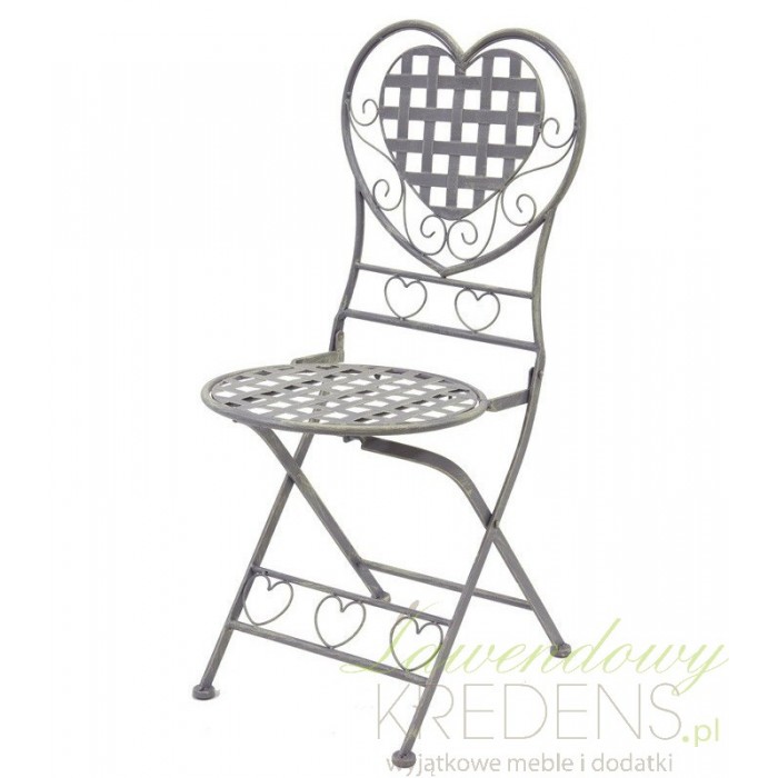 Krzesło w stylu prowansalskim do ogrodu jest w całości wykonane z metalu. Krzesło ogrodowe zostało ozdobione sercami na oparciu oraz na łączeniu pomiędzy przednimi nogami. W tak wyjątkowym i stylowym meblu nie mogło zabraknąć również antycznych postarzeń. Metalowe meble ogrodowe - i jesteś pewien, że urządzasz najpiękniejszy ogród. Krzesła prowansalskie to strzał w dziesiątkę!