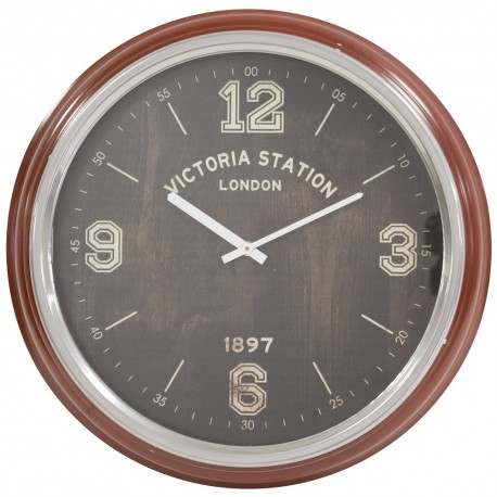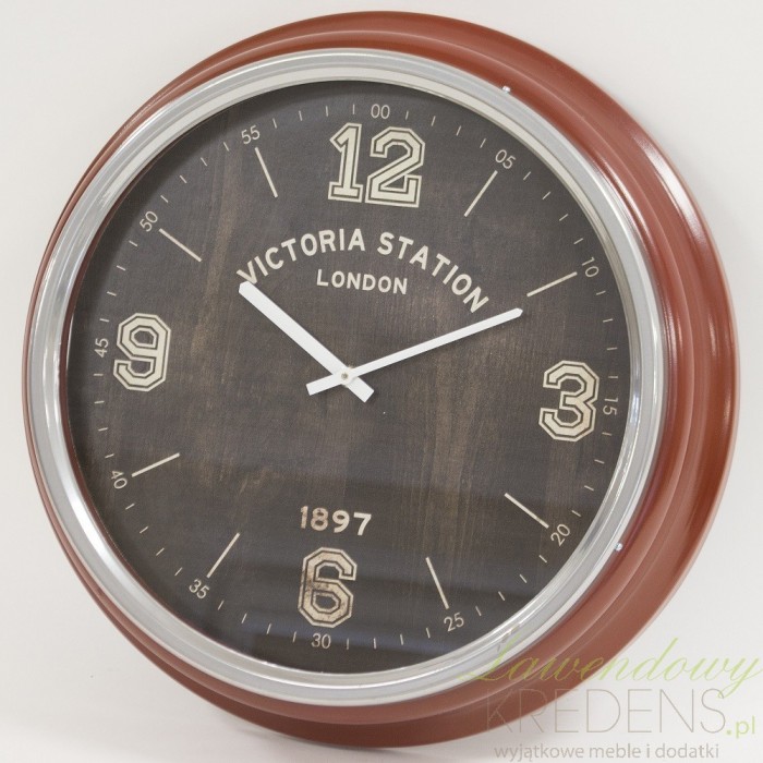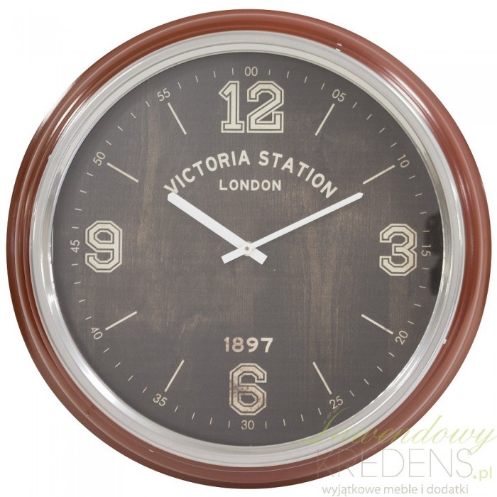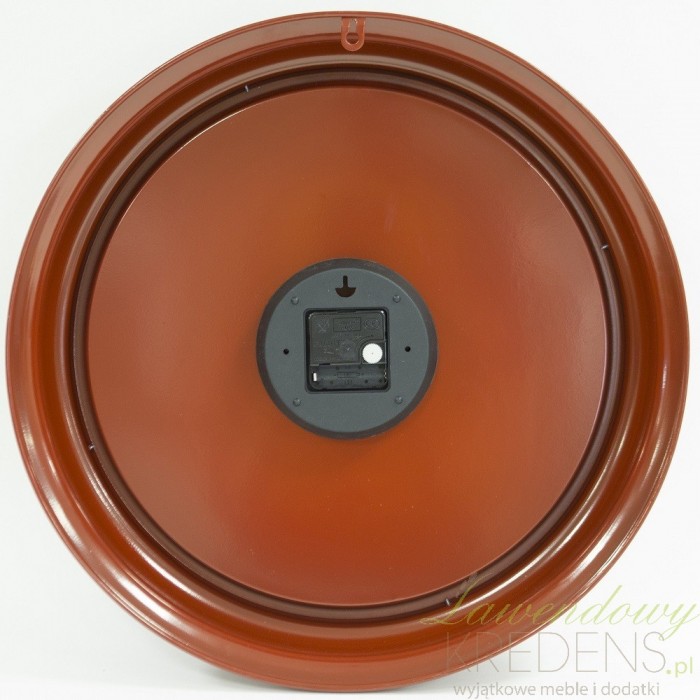 Przedstawiamy okrągły zegar retro w metalowej ramie pomalowanej na kolor bordowy. Rama z metalicznym połsykiem świetnie łączy się z cyferblatem imitującym drewno. Na tarczy znajdują się jedynie cztery godziny, ale dzięki jasnym kreskom pomiędzy nimi z łatwością odczytasz aktualny czas. Zegary ścienne takie jak zegary retro, to dodatki za pomocą których których stworzysz wnętrze marzeń.