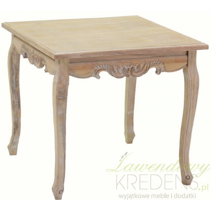 Piękne meble bielone w stylu prowansalskim to finezyjne zdobienia, najlepsza jakość wykonania i charakterystyczne usłojenie. Reprezentantem prowansalskiego stylu w salonie jest kwadratowy, bielony stół prowansalski o jasno-brązowym blacie z lekko wygiętymi nóżkami oraz przepięknym rzeźbieniem pod blatem. Zobacz inne meble bielone- zapraszamy!