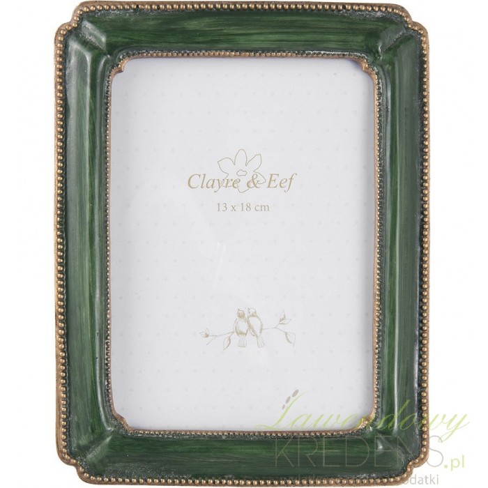 Ramka na zdjęcie od Clayre&Eef jest przepiękną dekoracją dla różnorodnych zdjęć. Zdjęcie rodzinne, portret czy zdjęcie ukochanej? Ramki na zdjęcia sprawdzą się w połączeniu z każdym z tych zdjęć. Ramka ozdobna ma zielony kolor i pozłacany wzór na zewnętrznej i wewnętrznej krawędzi.
