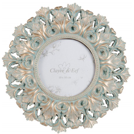 Ramki na zdjęcia od marki Clayre&Eef będą elementem podkreślającym wyjątkowy styl twojego wnętrza. Okragła ramka na zdjęcie posłuży ekspozycji portretów i nie tylko. Oprawa ramki to reguralnie rzeźbiony wzór w kolorze zielono-szarym z pozłoceniami. Piękna ramka w stylu prowansalskim może zostać wyeksponowana na ścianie lub na stoliku nocnym w sypialni.