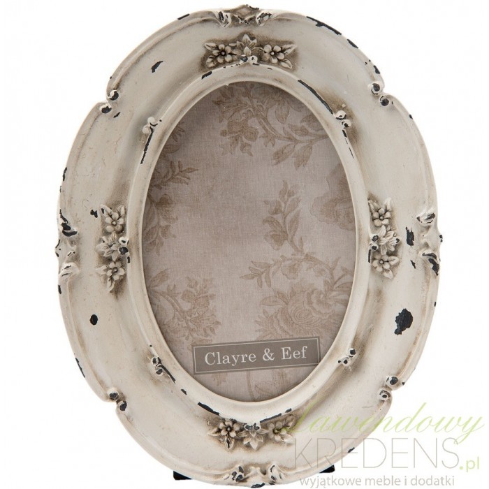 Ramka na zdjęcia firmy Clayre & Eef ma owalny kształt i przepiękny kremowy kolor. Jest bardzo dekoracyjna bowiem posiada naokoło ozdobne kwiatuszki i ma delikatnie przecieraną farbę. Ramki na zdjęcia to zarówno kobiece jak też bardziej męskie ramki, które wspaniale oddają klimat i styl mieszkania i domowników.