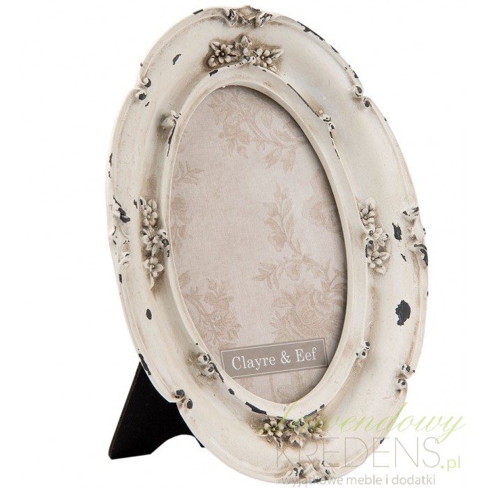 Owalna, kremowa i bardzo dekoracyjna ramka na zdjęcia firmy Clayre & Eef doskonała na biurko!