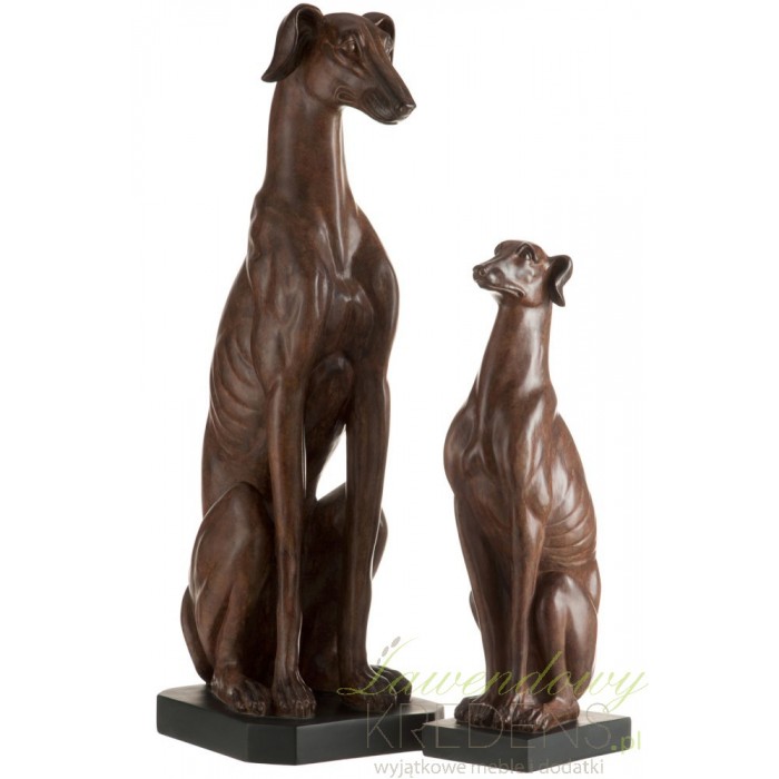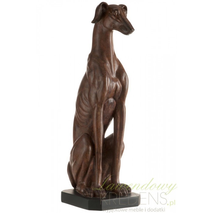 Stylowa statuetka jaką zdecydujesz się ozdobić swoje biuro lub salon może przesądzić o wyrazie całej aranżacji. Warto wybrać sprawdzone artykuły dekoracyjne jakim jest figura psa. Brązowy pies wygląda bardzo szczupło, o czym świadczą chude łąpy i zarysowane żebra. Jego smukła sylwetka może podkreślić wyjątkowość regału z książkami lub stanowić cześć dekoracji biurka.