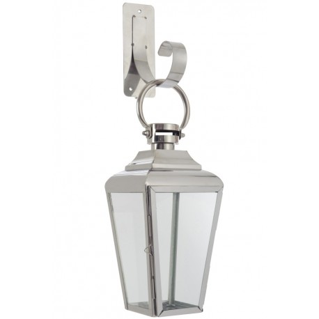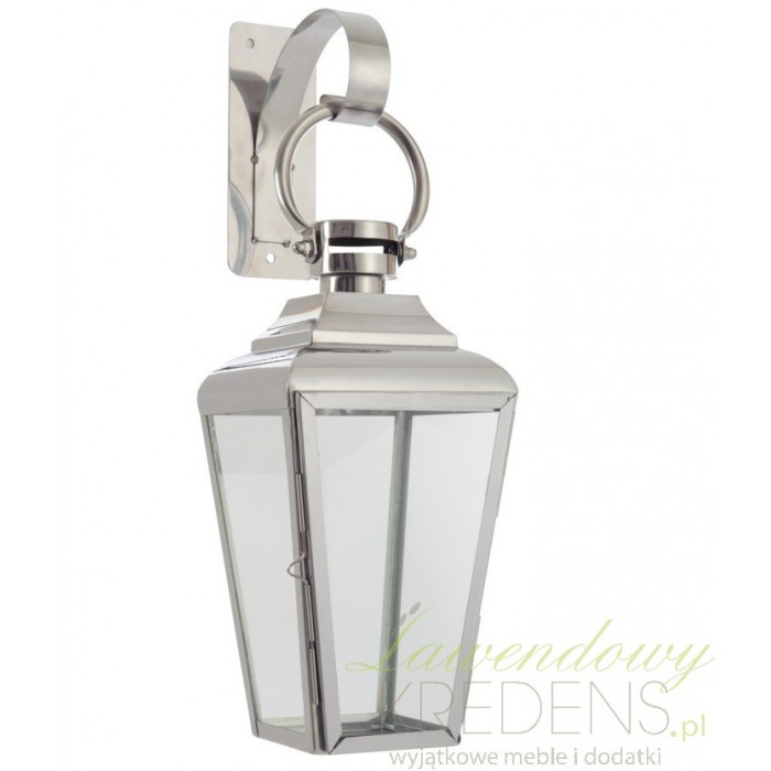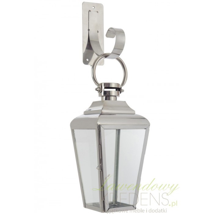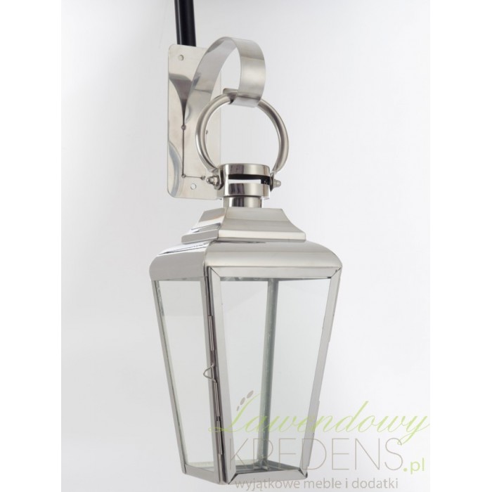 Srebrny lampion ścienny z hakiem bajkowo oświetli długi korytarz lub balkon.