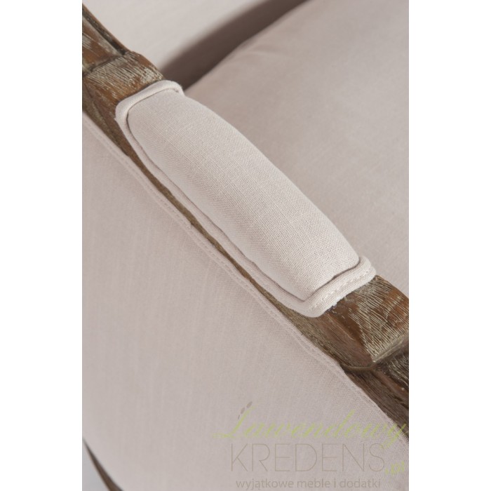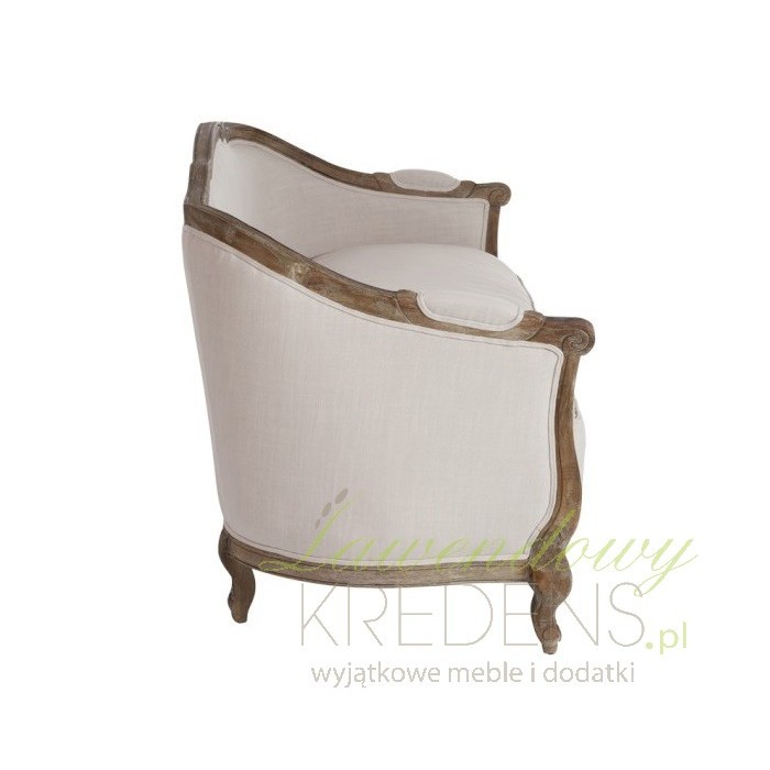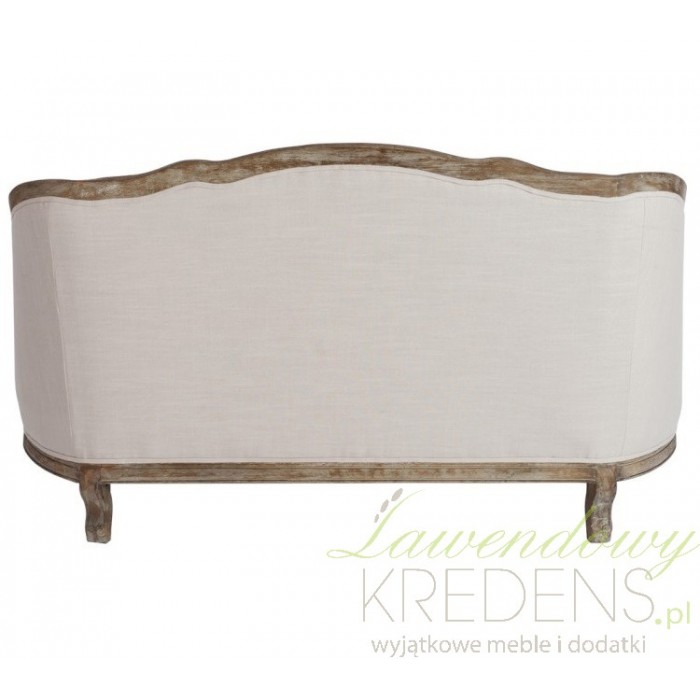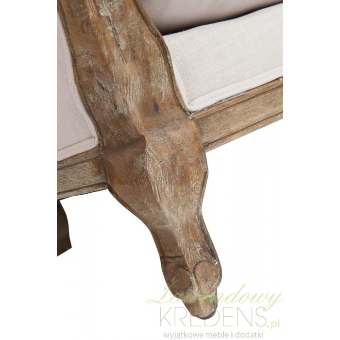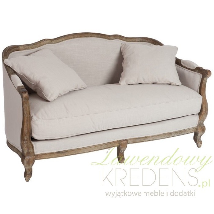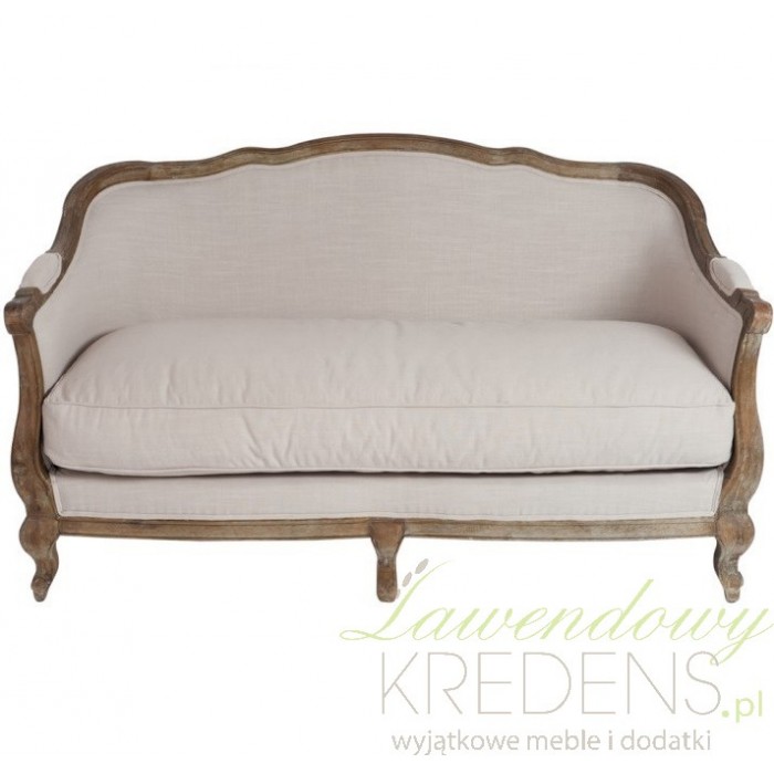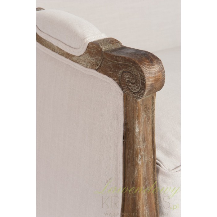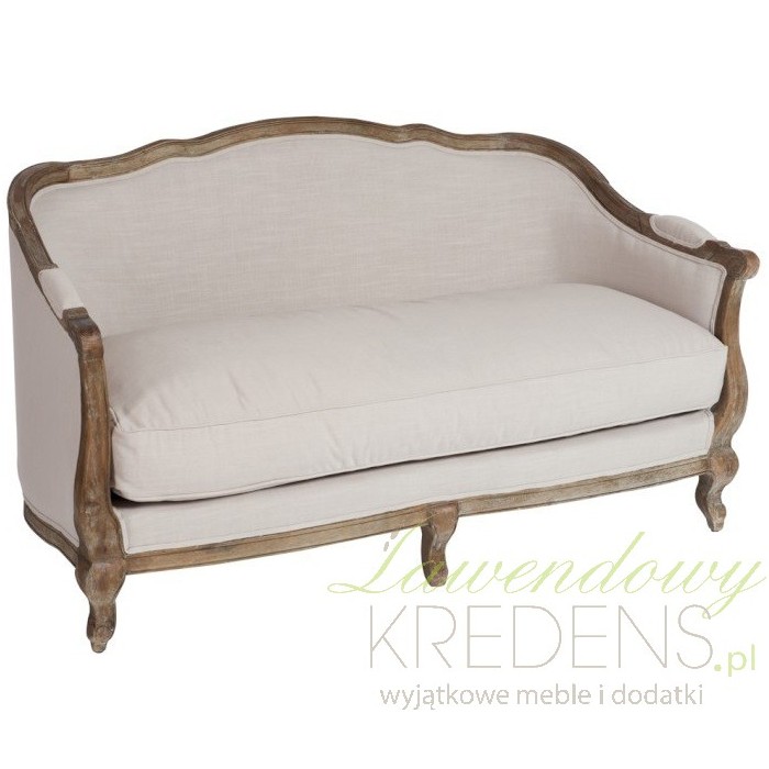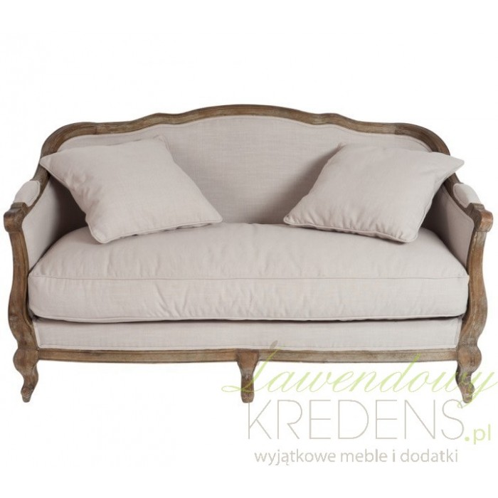Sofa prowansalska jest wykonana z litego drewna dębowego oraz jasnobeżowej tapicerki. Wygodna poduszka na siedzisku i dwie poduszki do ułożenia na sofie to jeden z najbardziej komfortowych mebli w naszej ofercie. Solidne wykonanie, akcent ciemnego drewna i rzeźbione nogi - to wszystko podkreśla piękny styl prowanslaski.