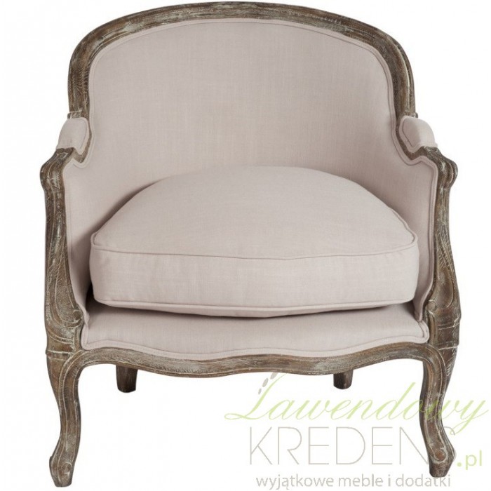 Tapicerowany fotel w stylu prowansalskim, który urzeka formą, ale także wysoką jakością materiałów z których został wykonany.
