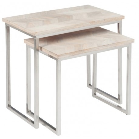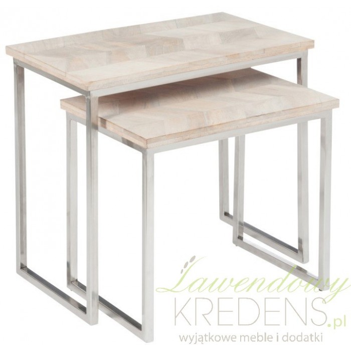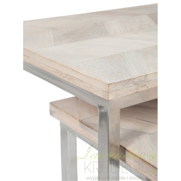 Meble Hamptons takie jak proste stoliki, różnią się od siebie wysokością i szerokością. Możesz ustawić jeden stolik obok drugiego, niższy delikatnie wysunąć bądź ustawić w dwóch różnych miejscach. Stoliki Hamptons wyróżniają połyskujące nogi metalowe i prosty blat z ciekawie ułożynym geometryczne drewnem. Sposób na dekoracje i podwojnie praktyczne wnętrze!