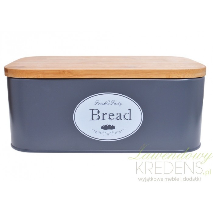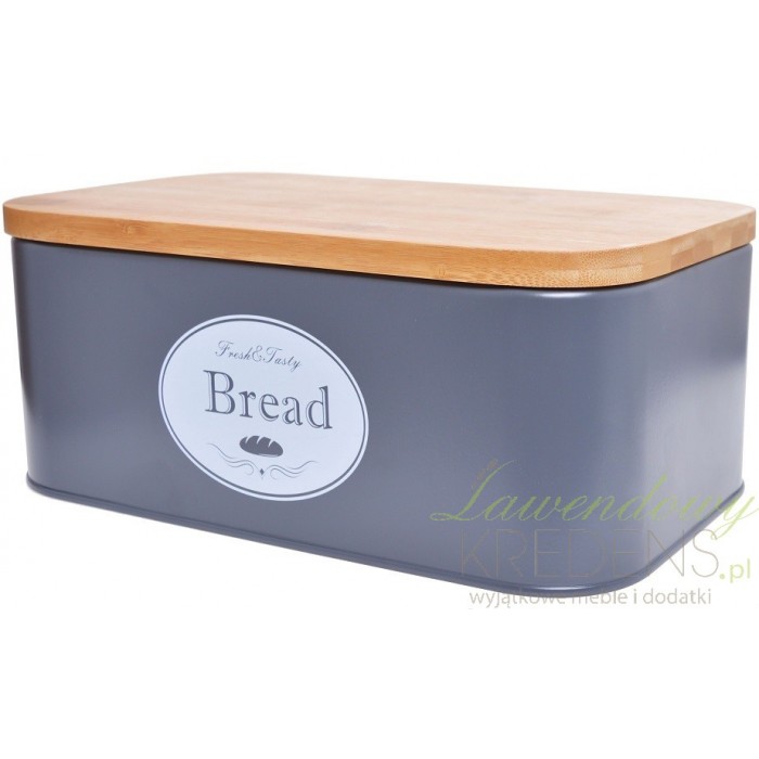 Na początku warto zadbać o pdostawowe dodatki do kuchni. Polecamy szary chlebak z napisami i grafiką na owalnej tabliczce. Metalowy chlebak dzięki dopasowanej przykrywce w kształcie prostokąta zapewni każdego ranka świeże pieczywo. Dodatkową funkcją jest możliwość użycia bambusowej przykrywki jako deski do krojenia.