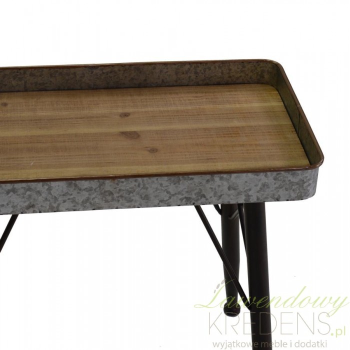Ciekawa konsola loft, której nietypowy blat został wykonany z ocynku i wyłożony drewnianą płytą. Z czarnymi nóżkami ciekawie kontrastują ranty blatu wykonane z ocunku. Konsola sprawdzi się także jako kwietnik czy też stolik w korytarzu albo przedpokoju.