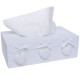 Urokliwie wykończone, białe pudełka na chusteczki. Wystarczy wysunąć spód pudełka, włożyć do niego tekturowe pudełko z chusteczkami i gotowe! Pudełka mają biały kolor, a ich bok ozdobiony jest trzeba serduszkami przewiązanymi kokardkami. Dzięki pudełkom na chusteczki dodasz wnętrzom uroku!