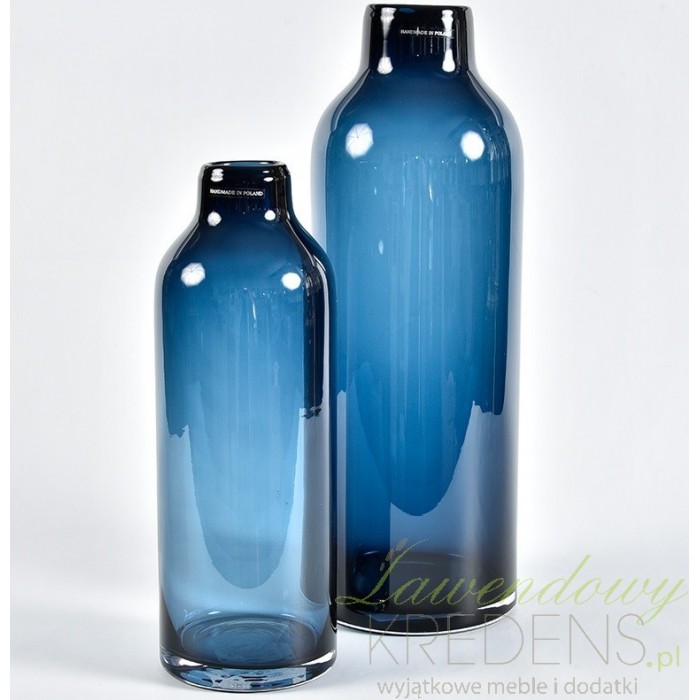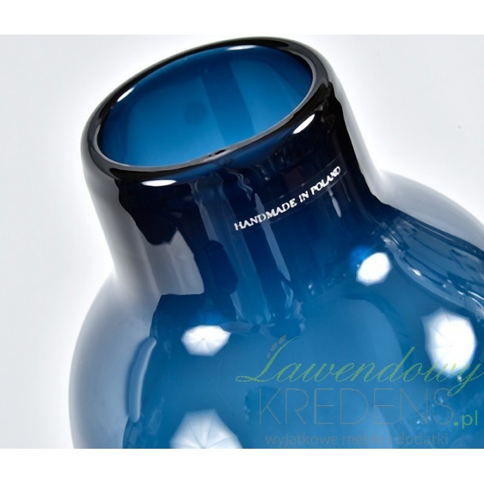 Przepiękny, granatowy szklany wazon firmy Belldeco wyglądający niczym butelka!