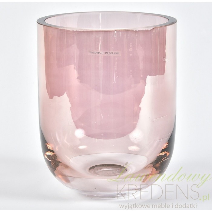 Różowy, szeroki szklany wazon Belldeco idealny na każdy stół lub komodę!