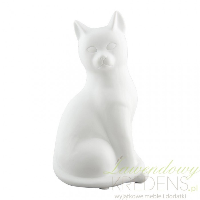 Lampka dziecięca od Clayre&Eef to porcelanowy kotek z zawiniętym ogonkiem wykonany z ceramiki.