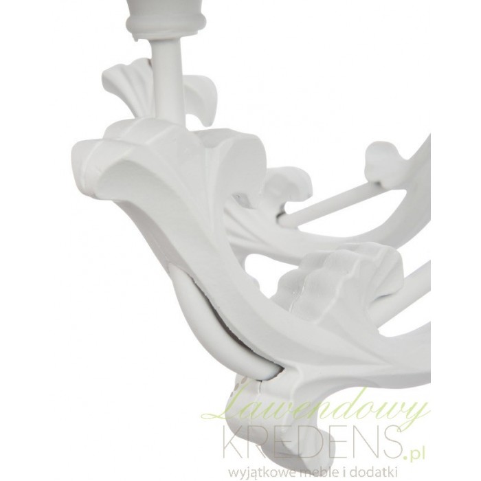 Żyrandole w stylu prowansalskim niegdyś zdobiły królewskie pałace, a dzisiaj są jedną z najpopularniejszych form oświetlenia salonów i jadalni. Wybierając metalowy żyrandol z drewnianymi rzeźbieniami wznosisz swoje wnętrze na wyższy poziom elegancji. Ten piękny żyrandol ma biało-szary kolor, który doskonale komponuje się z jednolitymi abażurami z bawełny.