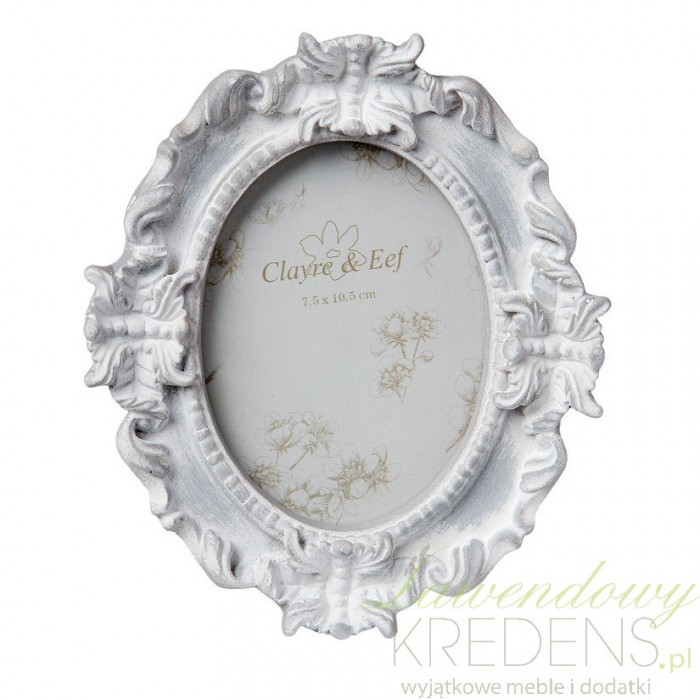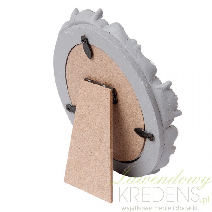 Szara ramka na zdjęcia jest bardzo dekoracyjnie rzeźbiona. Szary kolor ramki miejscami jest wzbogacony o białe bielenia. Ramka w stylu prowansalskim na owalne zdjęcie do ustawienia na komodzie lub stoliku nocnym przykuwa uwagę i nie pozostaje niezauważona. Ramki na zdjecia możesz również podarować w prezencie komuś bliskiemu.