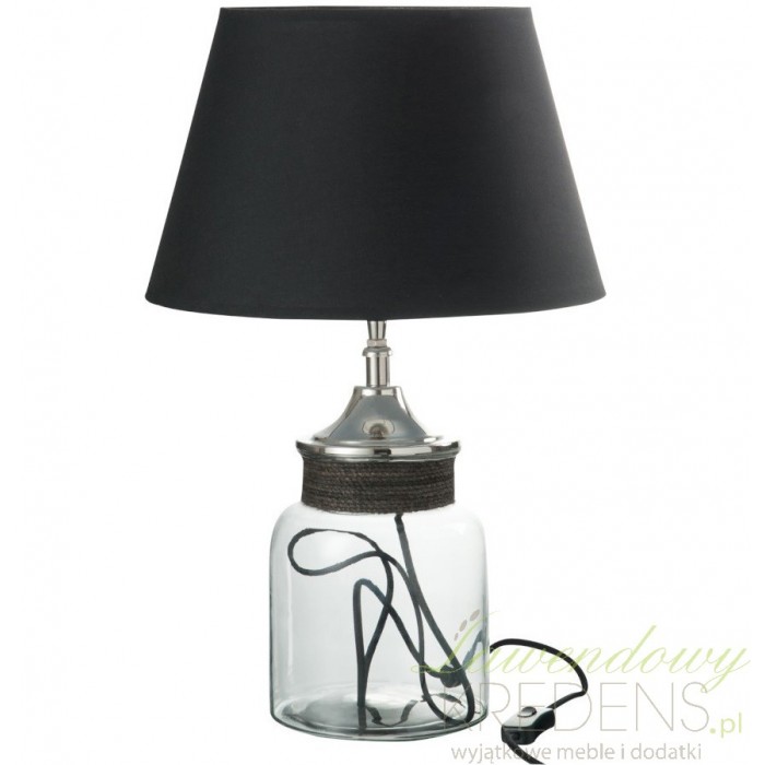 Lampa stołowa wykonana ze szkła i metalu w ciekawy sposób zagospodaruje komodę w salonie lub szafkę nocną. Lampa dzięki przeźroczystej nodze stanie się obiektem zainteresowania twoich gości. Przezroczysta lampa z czarnym abażurem to wybór godny eleganckich i nowoczesnych wnętrz. Czarne lampy stołowe zawsze są na czasie!