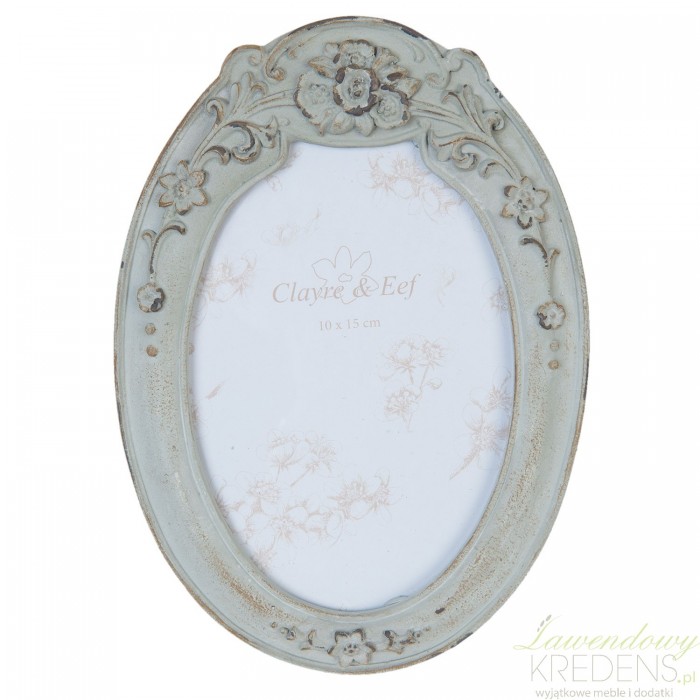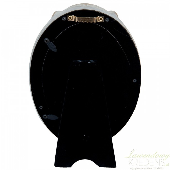 Piękna, owalna ramka na zdjęcia w stylu prowansalskim, zwróci na siebię uwagę wszystkich dzięki kwiatowym rzeźbieniom w górnej części.