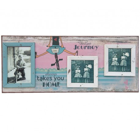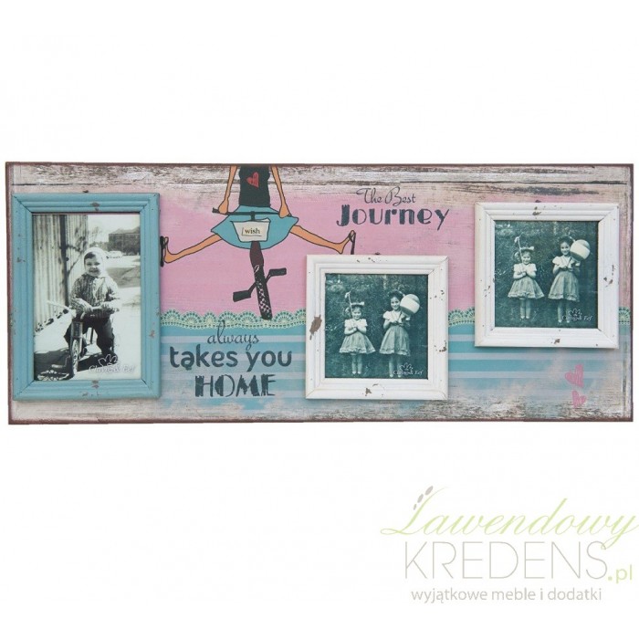 Oryginalna ramka na zdjęcia w tym na jedno większe i dwa mniejsze. Te ramki na zdjęcia umieszczone są prostokatnej tabliczce w różowo - niebieskiej kolorystyce. Niesamowicie prezetujące się dodatki w stylu retro już dziś w naszym sklepie.