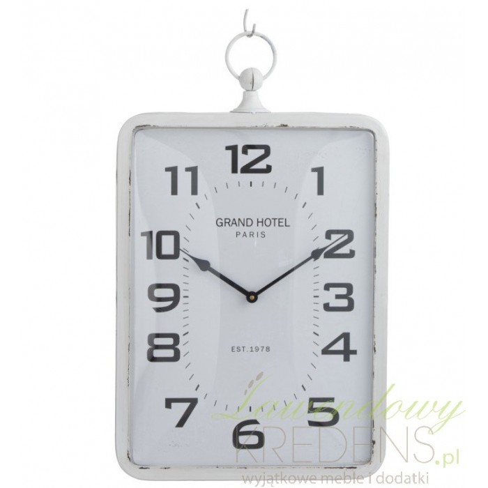 Prostokątny zegar ścienny z przecierkami to efektowny odmierzacz czasu na ścianę w salonie lub w pokoju dziennym.