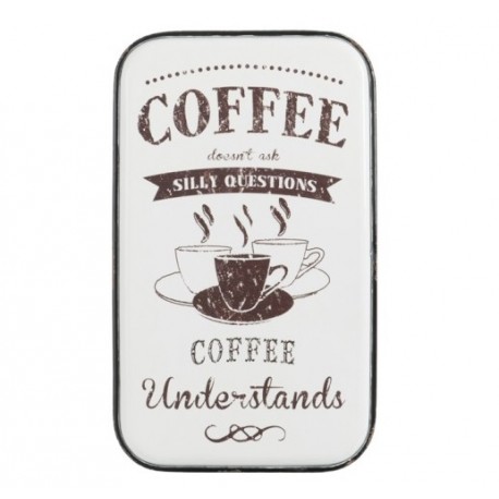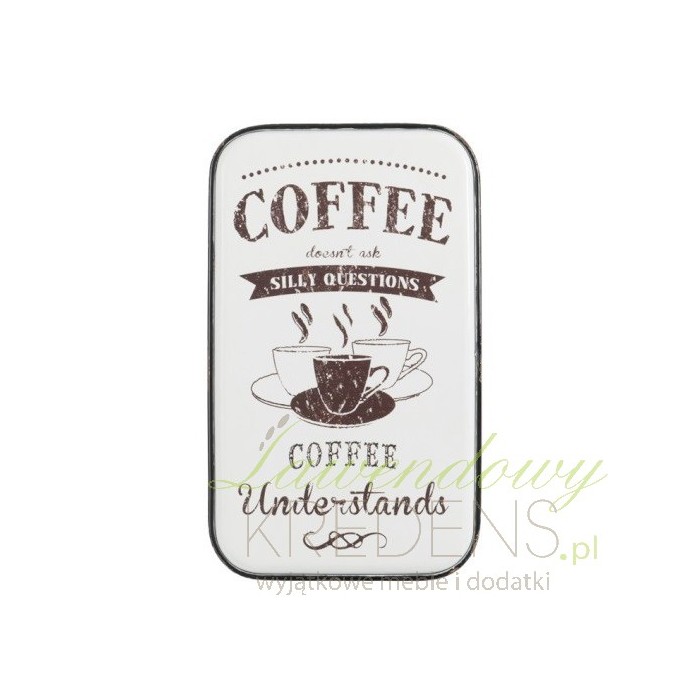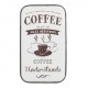 Tablica z kawą ma także ozdobne napisy angielskie, to dekoracja przeznaczona do kuchni, kawiarni i barów.