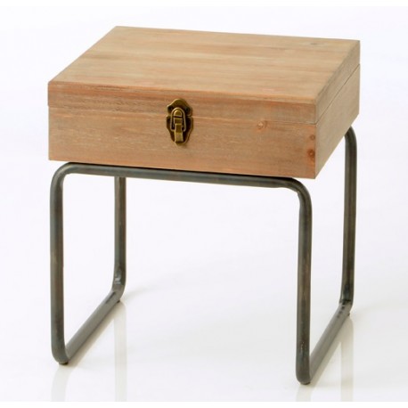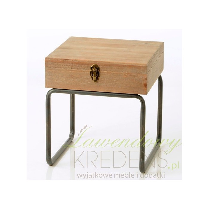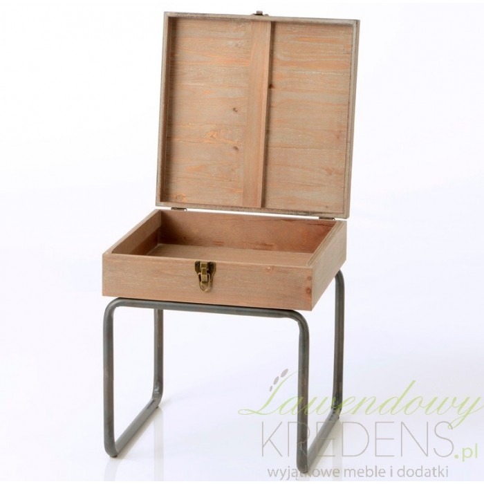 Stolik kawowy ma metalowe nogi i blat w formie skrzyni z drewna jodłowego. Kwadratowy stolik z metalowym zamkiem możesz wykorzystać też jako nietypowy stolik nocny. To co świadczy o wyjątkowości stolika to przede wszystkim jego wnętrze. Sam zdecyduj czy wykorzystasz go jako stolik kawowy czy stolik boczny.