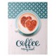 Obraz w stylu retro przedstawiający filiżankę kawy z uroczym wzorem dwóch połączonych ze sobą serc oraz napisem!
