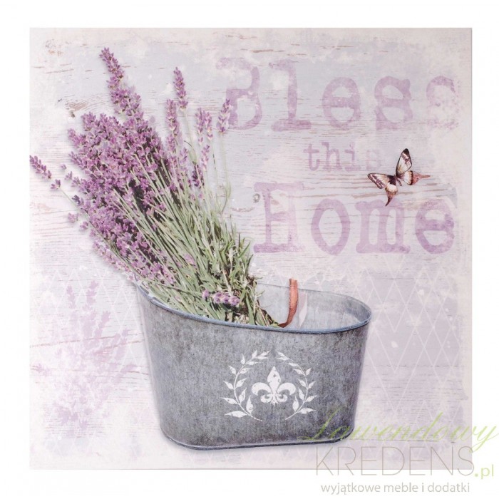 Uroczy obraz Prowansja możesz z łatwością użyć do stylowego wykończenia Twojego domu. Wykonując obrazy z lawendą zastosowano płótno i drewno – trwałe materiały, które nie zniszczą się z upływem czasu. Motyw kwiatów lawendy i owadów doskonale pasuje do każdego pomieszczenia, podkreślając jego naturalny i jednocześnie przytulny wyraz. Fioletowy obraz z lawendą ma w tle zanikający napis "Bless the home".