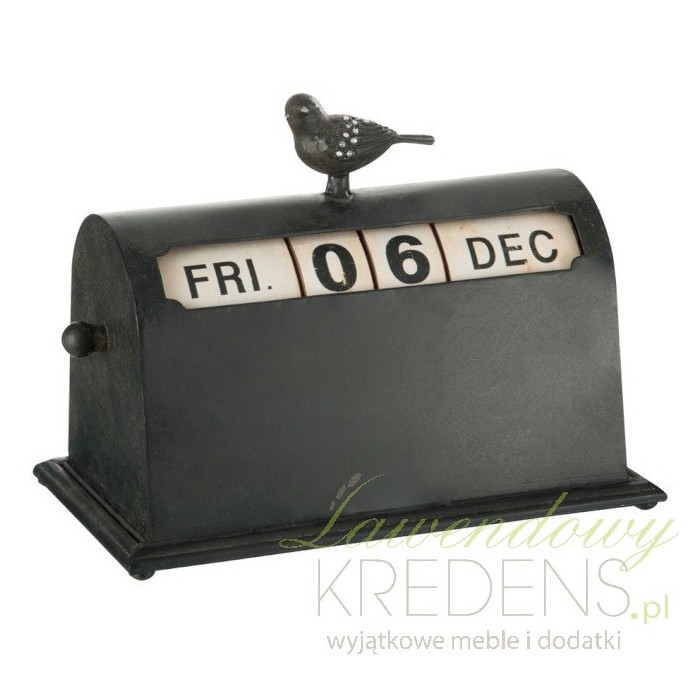Kalendarz stojący to świetny wybór do eleganckiego gabinetu na biurko lub do salonu na komodę. Kalendarz stołowy wykonano w całości z metalu w kształcie prostokątnym z zaokrągloną kopułą. Kalendarz stołowy pokazuje datę w jednym wierszu widocznym w prostokątnym wycięciu. Dodatki do domu takie jak kalendarze w postarzanym stylu to również sposób na podkreślenie antycznego klimatu.