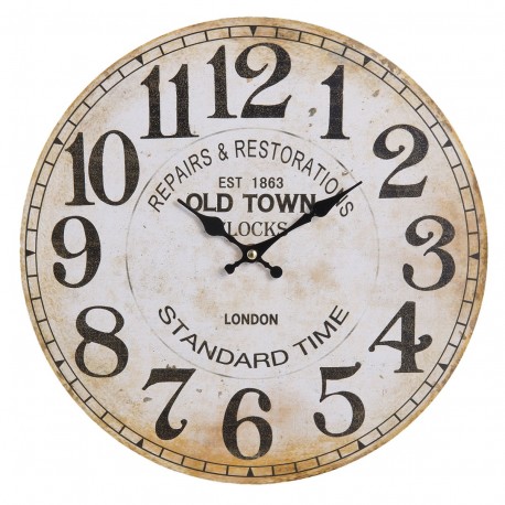 Zegar retro z napisami Old Town jest zasilany jedną baterią. Bez problemu zawiesisz go na ścianie i dzięki temu stworzysz klimatyczny nastrój. Zegary retro dzięki postarzanym tarczom wyglądają jakby zostały przeniesione z innej epoki. Zegary ścienne tego typu możesz zestawić kontrastowo z nowoczesnym wnętrzem jak i spójnie połączyć z antyczna przestrzenią.