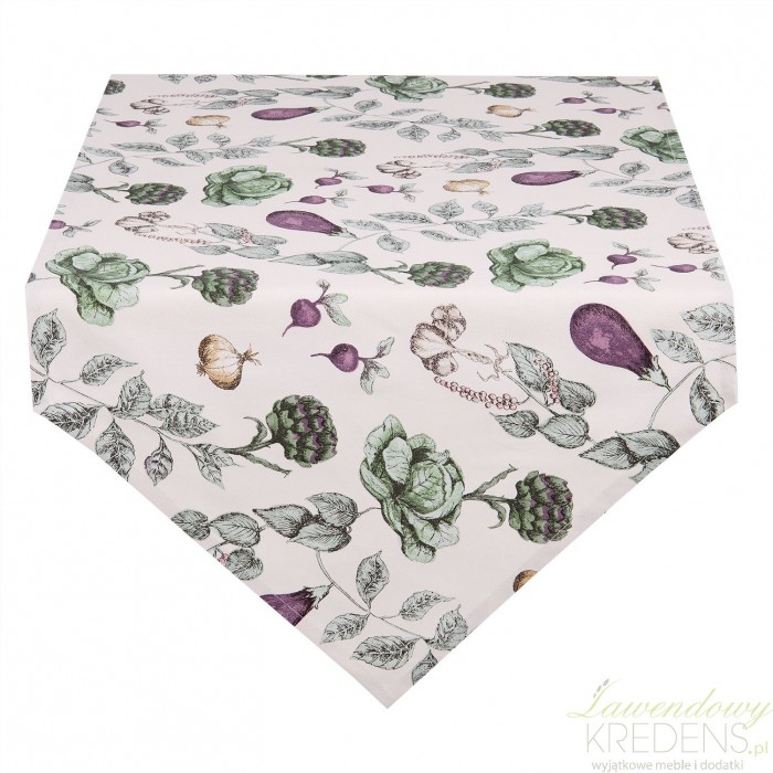Wykorzystaj naturalnie upiększające działanie tekstyliów w stylu prowansalskim i wybierz bieżnik na stół z warzywami.