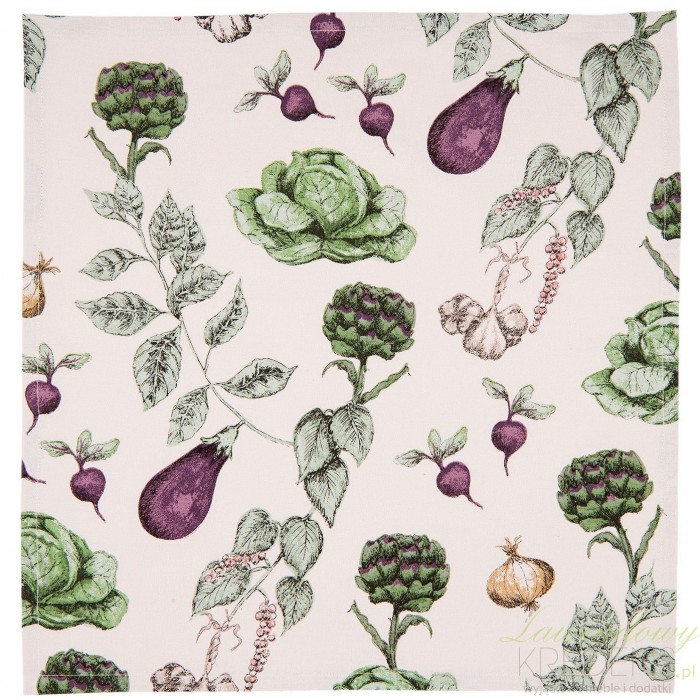 Zestaw serwet stołowych to aż sześć kwadratowych tekstylii. Każda z serwet jest uszyta z bawełny i zdobiona warzywami w zimnych kolorach. Stylowe serwety stołowe od CLayre&Eef mogą stanowić ciekawy zamiennik dla zwykłego okrycia stołu. Niezwykłe bawełniane serwetki prowansalskie to także urozmaicenie restauracji urządzonej w swojskim klimacie.