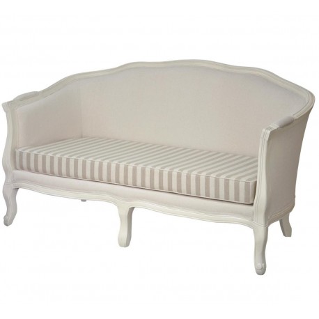 Sofa prowansalska to mebel z kolekcji Livin Hill. Sofa w stylu prowansalskim zestawiona z niskim stolkiem kwowym stworzy świetne miejsce do relaksu. Wykonana jest z drewna i ma pełne, beżowe oparcie oraz francuskie rzeźbienia. Siedzisko to materac w paski. Polecamy meble prowansalskie!