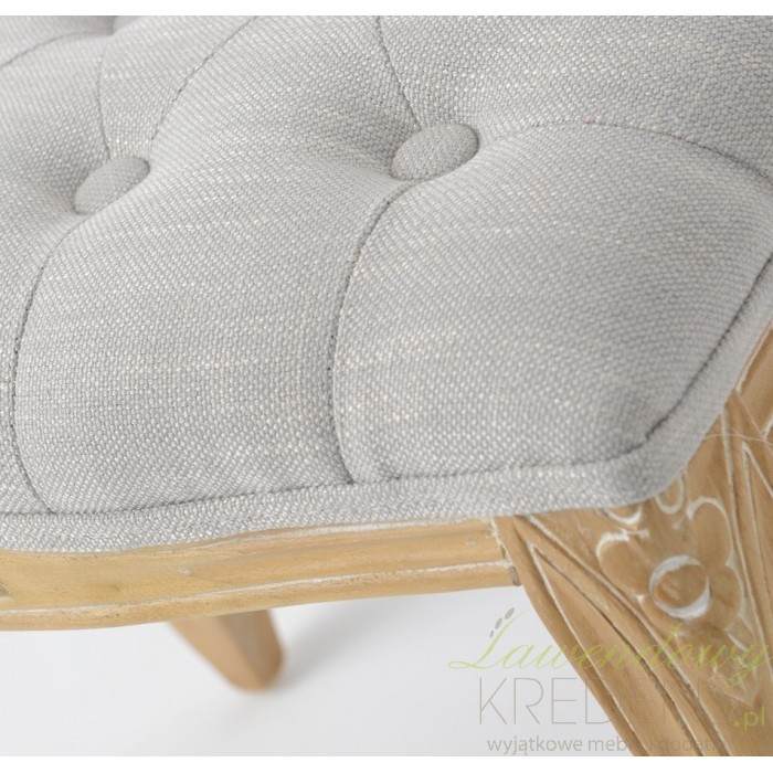 Prowansalskie meble jakie znajdziesz w naszej ofercie pomogą Ci w urządzeniu domu marzeń. Przykładem jest taboret tapicerowany. Taboret prowansalski ma podłużne, pikowane siedzisko w szarym kolorze. Polecamy do przedpokoju lub jako siedzisko przy eleganckiej toaletce.