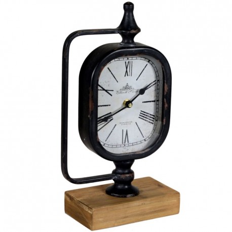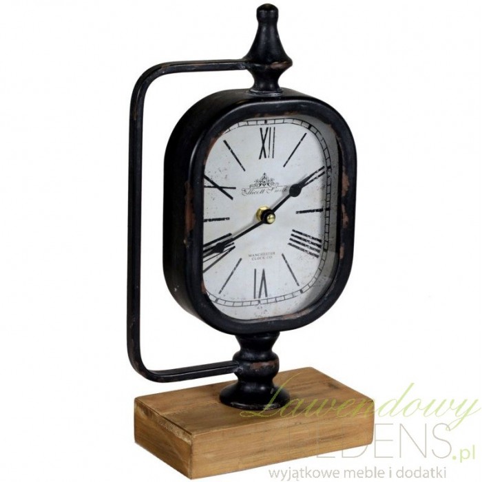 Zegary w stylu industrialnym dzięki prostej formie moga być wykorzystywane w wielu aranżacjach. Zegar loft ma czarny kolor i brązową podstawę z drewna. Został wykonany z metalu i ozdobiony niewielką grafiką francuską na jasnej tarzczy. Zegar stołowy pasuje doskonale nad kominek lub do gabinetu na biurko.