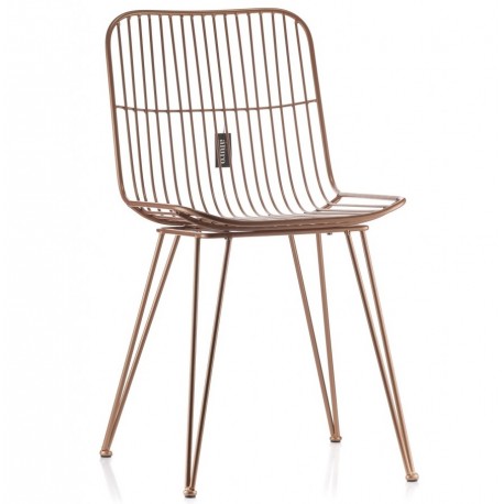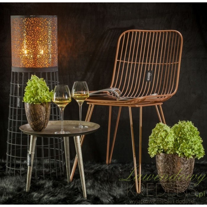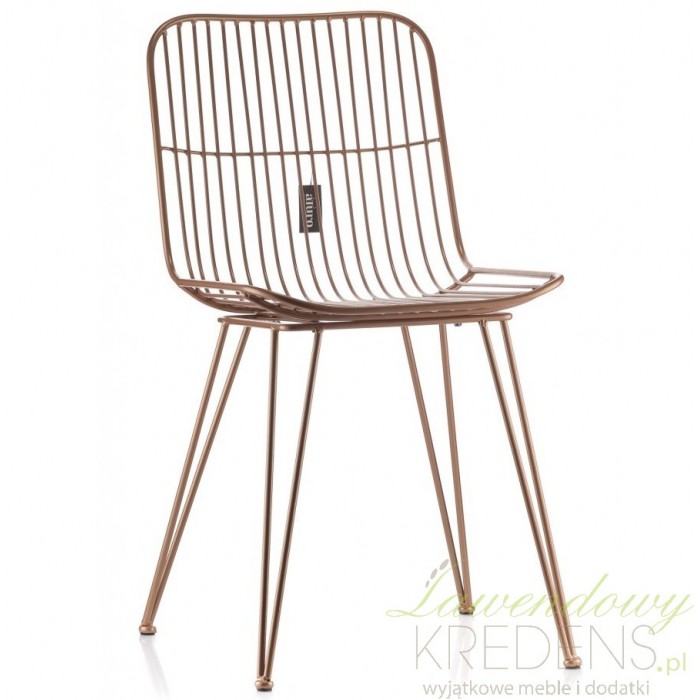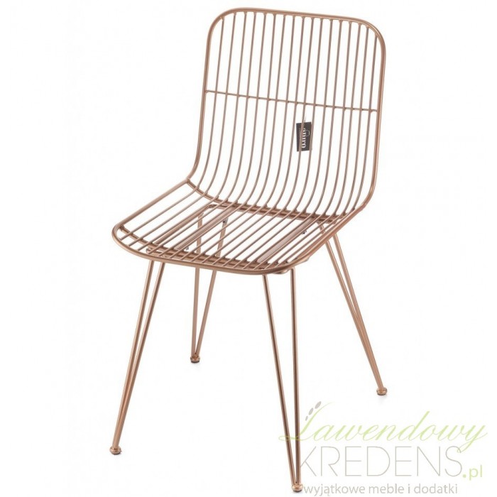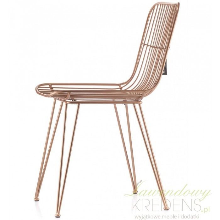 Metalowe krzesła sprawdzają się we wnętrzach loftowych i industrialnych, ale też w tych bardziej nowoczesnych. Złote krzesło to model, który możesz zestawić z czarnymi lub białymi meblami w salonie lub w jadalni. Marka Aluro tworząc ten model krzesła dopracowała i zadbała o każdy szczegół. Oparcie i siedzisko krzesła jest wykonane z prostych prętów i stabilnie opiera się na czterech nogach.